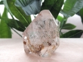 うっすらとスモーキーカラーの水晶内部に、リモナイトと思われる鉱物のインクルージョンが見られ、