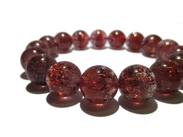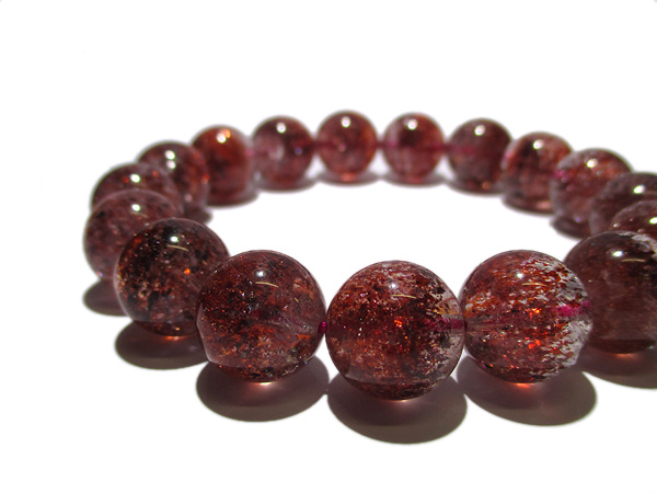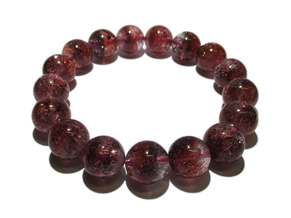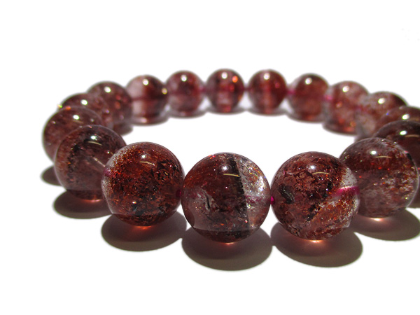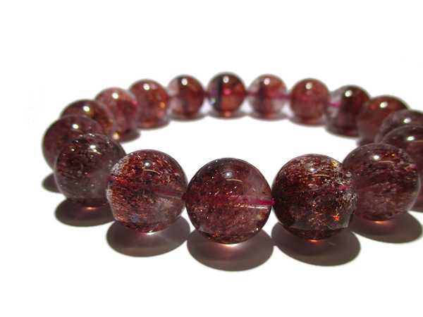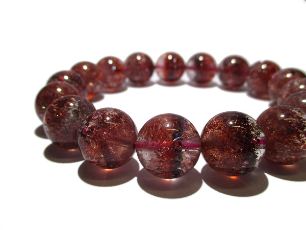 赤色や黒っぽい破片状の内包物レピドクロサイトが水晶の中に混入しているレピドクロサイト イン クォーツのブレスです。