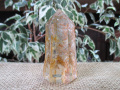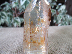 透明度抜群な水晶の中にイエローゴールドの鉱物のインクルージョンが見られる神秘的なガーデンクォーツです。