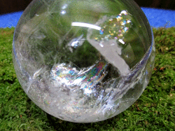 抜群の透明感と美しいレインボー(虹)の現れる、天然水晶丸玉です。