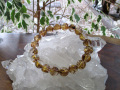 非常に透明度の高い水晶に、美しいブラウンゴールドのルチルが内包したブレスレットです。